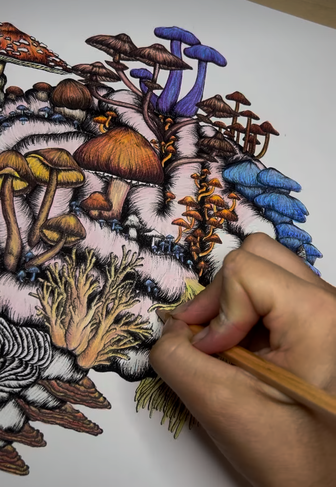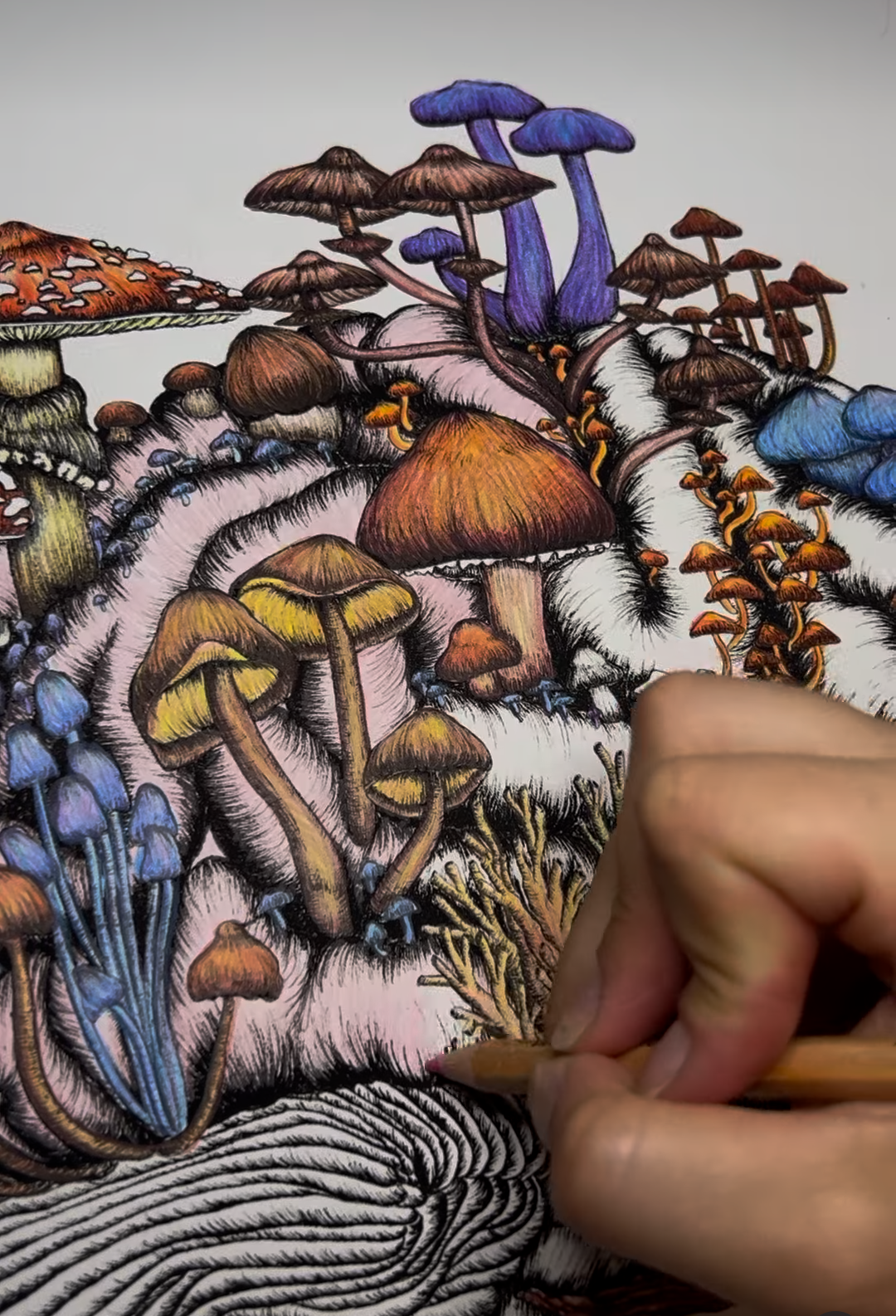 The last of the existing large scale anatomical illustrations, the Mushroom Brain is finally getting some color! The color version of the Mushroom Brain is coming to the online store soon and will be available as prints just in time for the gift giving season.