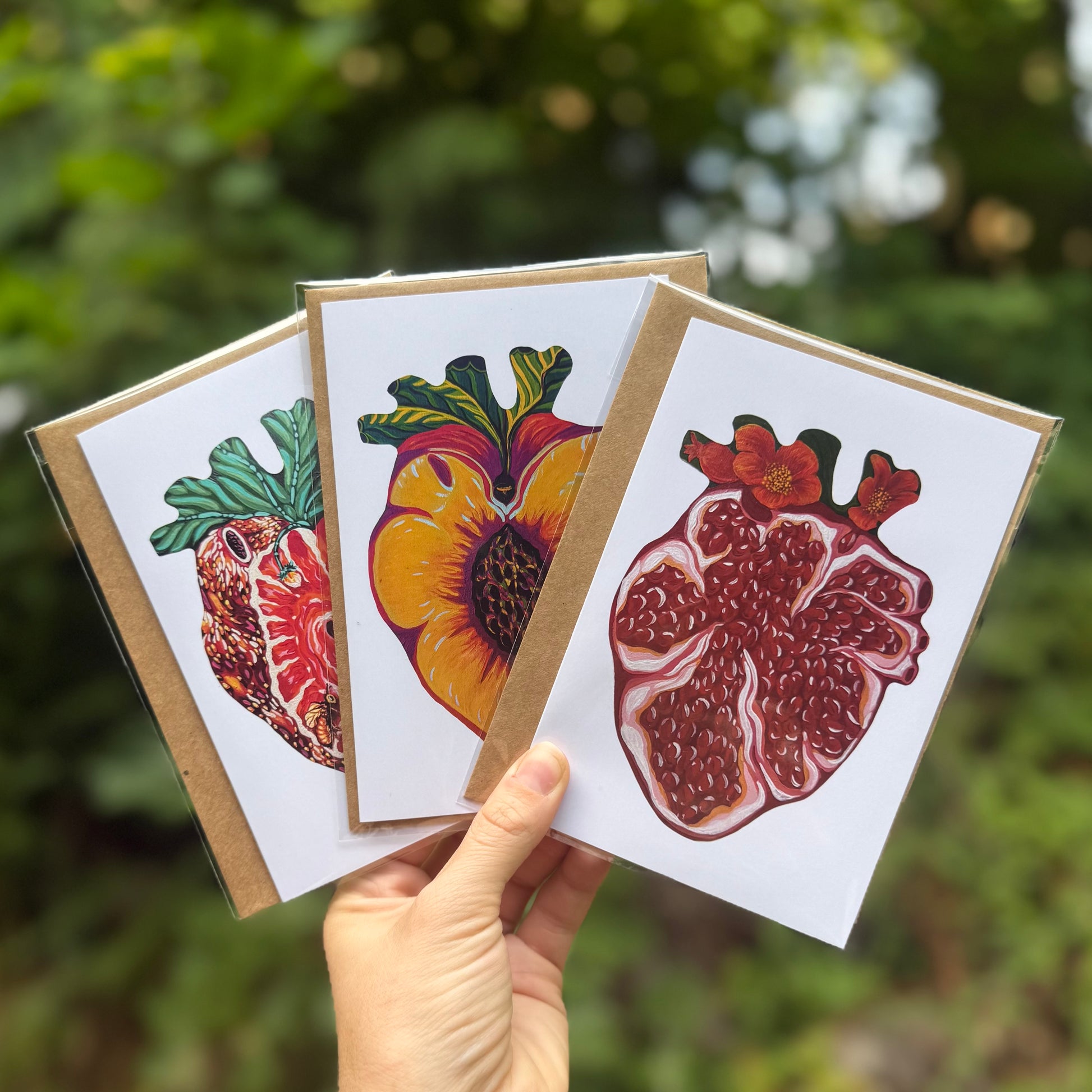 Pomegranate Heart is part of a larger Fruit Heart series that seeks to make anatomy fun, playful, and inviting. There is artistic and anatomical play that keeps this heart relatively accurate while fully transforming it into something different. The Fruit Heart series was inspired by the bounty of spring and summer and the concept of breaking your heart open to be able to enjoy what's inside.